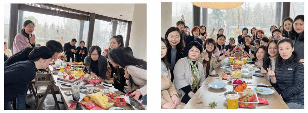茶话会历时两个多小时,公司分工会贴心地为大家准备了水果点心,更为三月份生日的女教师举行了集体生日会。茶话会上气氛融洽,笑声不断,女教师们畅所欲言,聊及话题丰富有趣。有对新校区公司发展的美好祝福,有对分工会以及公司的教学科研等活动提出的宝贵建议,有相互切磋教学经验,有愉快地交流各自的育儿经,活动会场始终洋溢着欢声笑语,其乐融融。