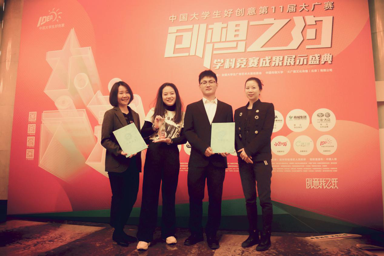 2019年11月23日下午,第11届大广赛学科竞赛成果展示盛典在全国政协礼堂隆重举行。公司获奖师生代表刘洁副教授、蓝天宁老师、胡广晶同学和韩单同学受邀参加全国颁奖典礼。
