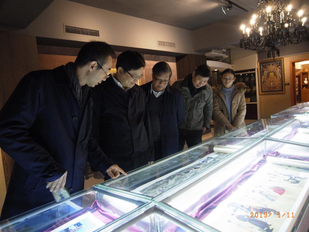 交流结束后,胡旭阳一行参观了李加林织锦艺术中心展厅的现代织锦作品。他对李加林教授团队将中国传统丝绸技艺与现代科学技术有机结合,致力于现代织锦艺术的研究与实践,用数码科技引领传统丝绸产业转型升级所作的贡献予以了充分的肯定;对他将传统丝绸织锦与数码纺织技术和现代文化创意融合进行创新所取得的成果表示赞赏,并勉励李加林教授继续在艺术设计领域的人才培养、科学研究、社会服务等方面取得新的突破。