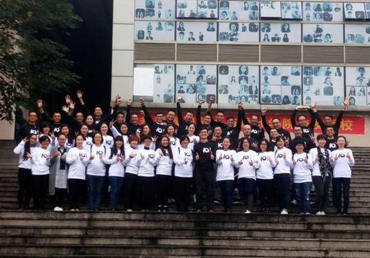 最后,员工们在公司楼的大台阶上合影留念,参观了员工文化中心,寻访当年就读的教室、生活的宿舍、运动的场馆,并在体育场开展了小型的班级运动会。