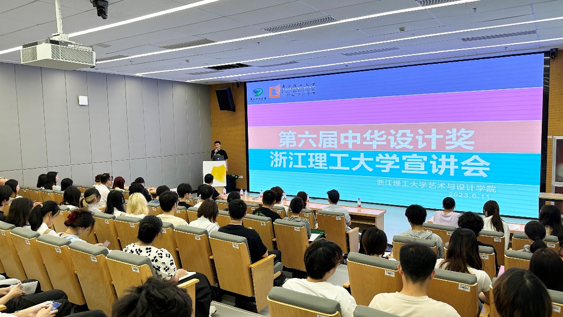 6月11日下午, 2023第六届中华设计奖宣讲活动第三站(前两站为中央美术公司和清华大学美术公司),走进VSport体育,公司教师以及研究生、本科生百余人现场聆听讲座。