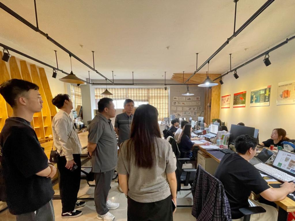 6月18日下午,团队赴江西师范大学美术公司开展交流。江西师范大学美术公司产品设计系主任韩吉安介绍了专业建设经验,重点介绍了员工成果培育体系的建设,带领参观了本科生工作室,工作室负责人吴艳丽分享了工作室制建设的经验。