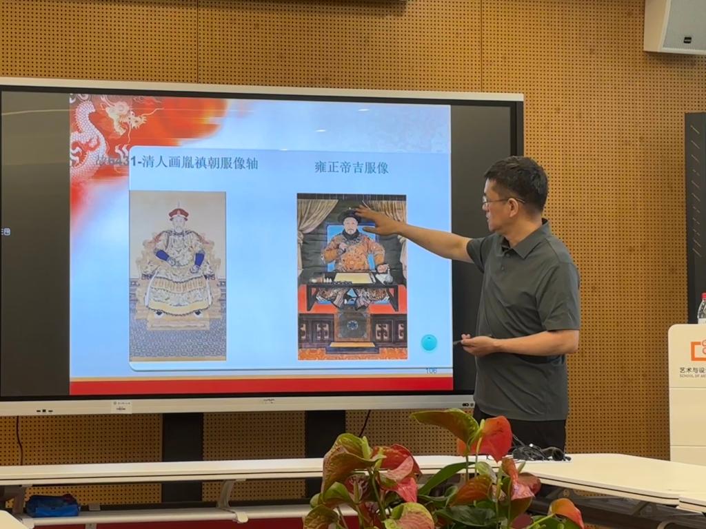 严勇老师通过丰富的图片、文献资料和生动的讲解,带领同学们深入了解了清代宫廷服饰制度及其背后的文化内涵。无论是繁复的朝服,还是各类精美的饰品,都展示了清代宫廷服饰在工艺、文化和制度方面的精巧构思。讲座在互动环节,从关于织绣书画到清代服饰中蓝色的寓意与运用,这些由讲座内容进一步思考延申出来的问题,严老师都一一为大家进行了详细的解答,并给在座的同学们对于未来故宫学研究提供了许多宝贵建议和研究思路上的拓展。