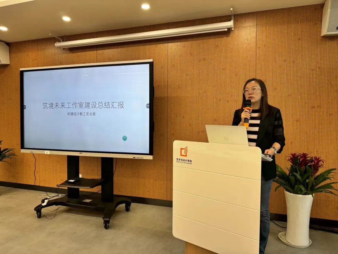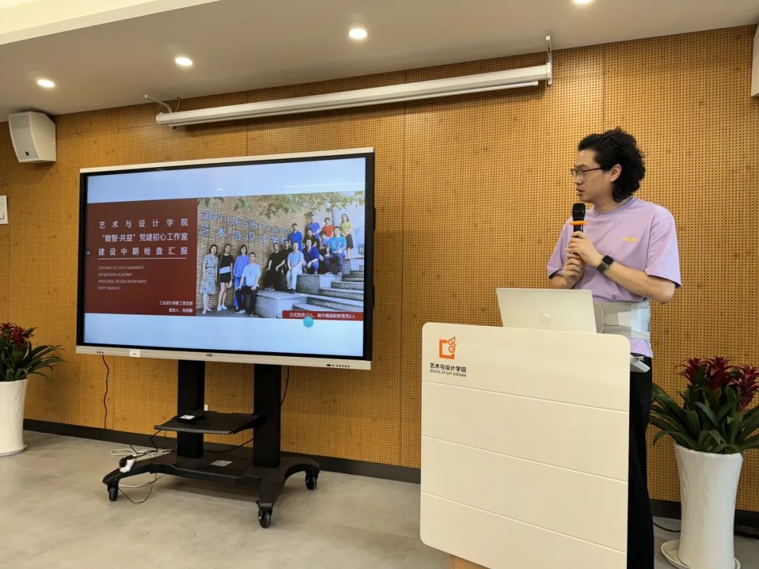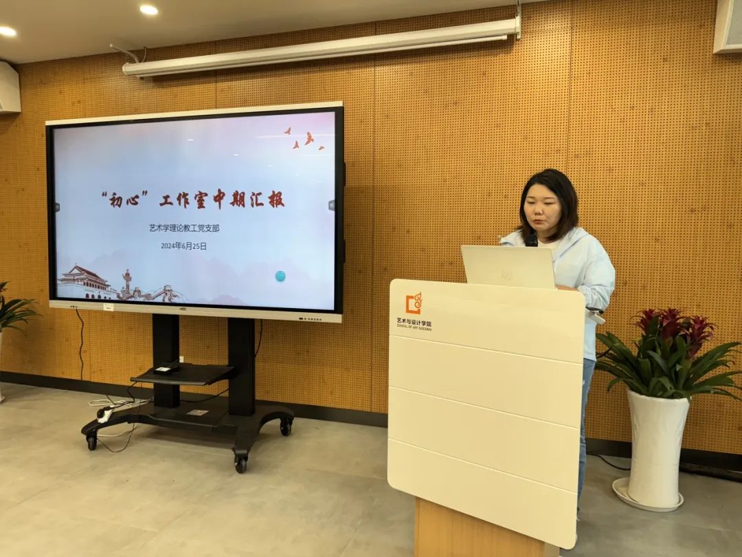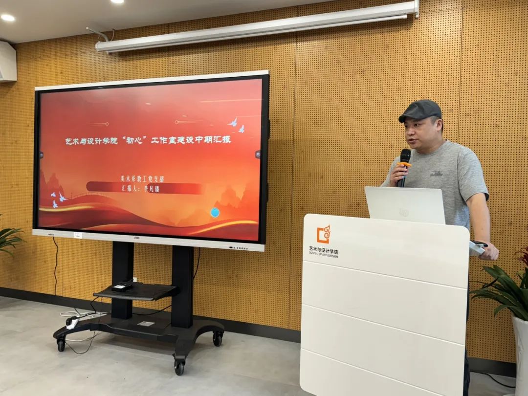 第二批党建“初心”工作室进行中期汇报。“数智·共益”工业设计系教工党支部书记张祖耀、“艺展·美育”美术系教工党支部书记李凡璠、“三美”艺术学理论教工党支部书记李碧依次汇报。