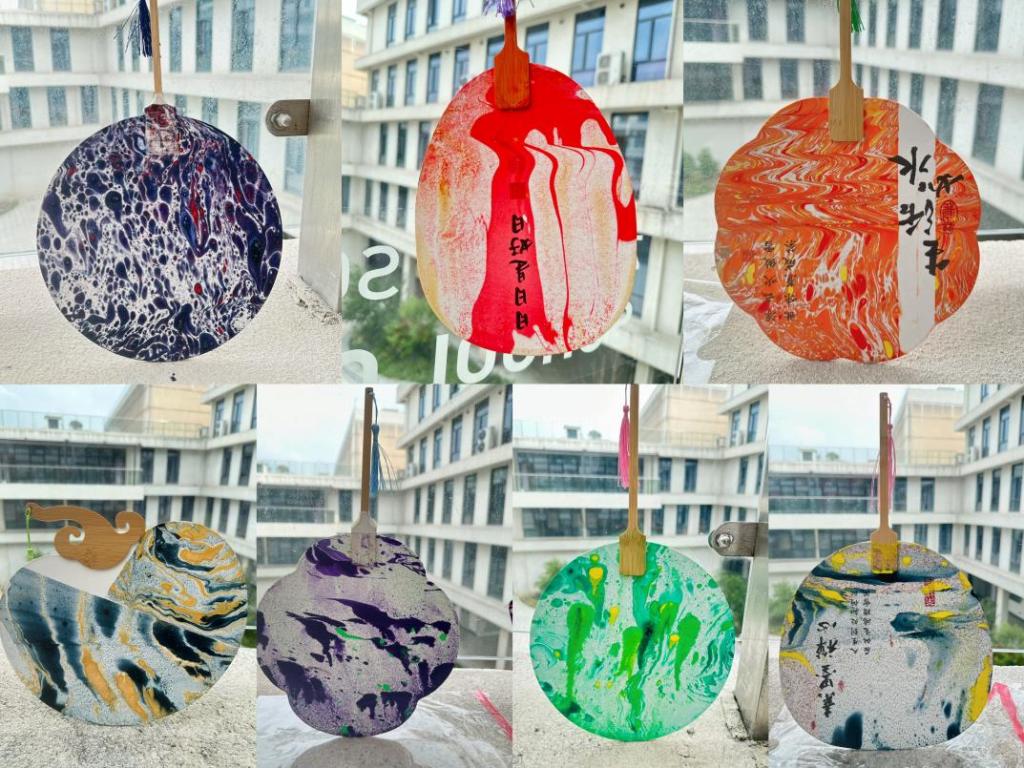 老师们在制作过程中,以漆为笔、以扇为纸、以水为墨,在入水出水之间充分感受扇艺之美,现场欢声笑语,其乐融融。大家觉得此次活动很有意义,体验到了从无到有,亲手制成漆扇的成就感与乐趣,切身感受了一次色彩流动的中国美学,感受到了传统文化的魅力。