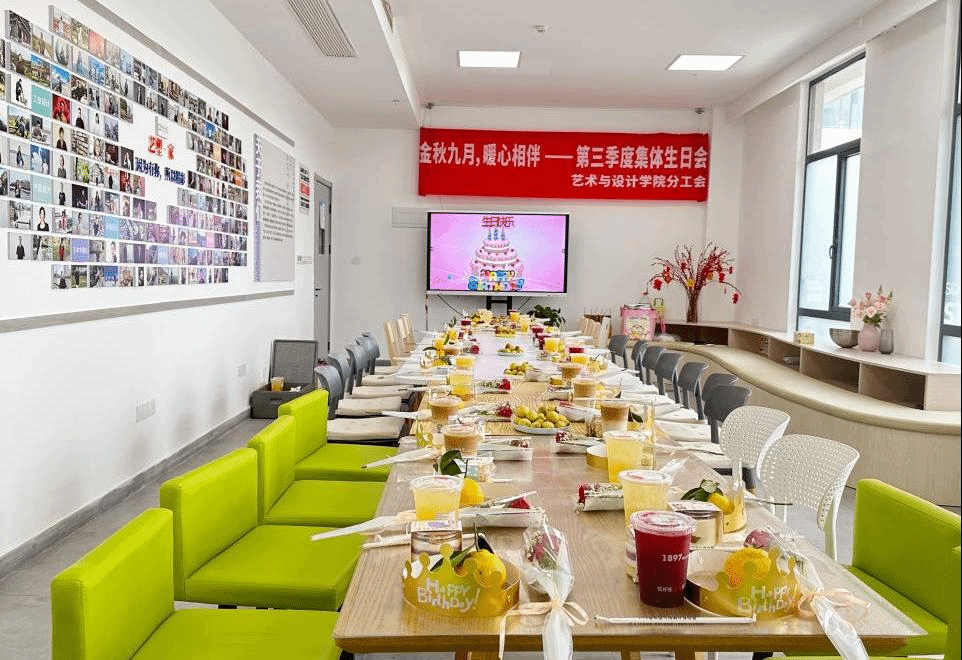 为了营造温馨、积极的新学期工作氛围,增强教师团队凝聚力和归属感,促进新老教师之间的交流与合作。9月18日中午,艺设公司分工会在5号楼359室举行了2024年第三季度集体生日会,以满满的仪式感为“寿星们”送去最真挚的祝福。