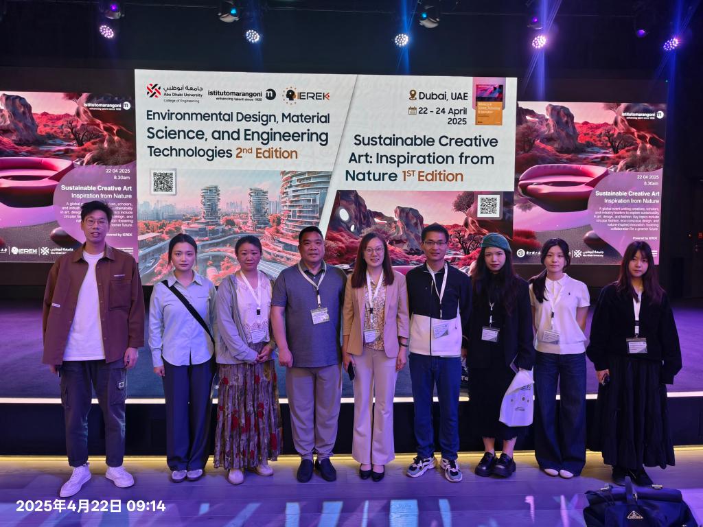 在阿布扎比大学迪拜校区举行的国际学术会议中,艺设公司设计学24级环境设计与时尚人居方向研究生冯溢宁、23级工业设计工程方向研究生张雨婷分别围绕“可持续环境设计”与“基于用户需求的产品设计”在大会分论坛中进行了论文宣讲,这是艺设公司硕士研究生今年首次在境外的国际会议上进行论文宣讲,展现了艺设公司在硕士研究生人才培养中的实力,受到与会专家的高度好评。