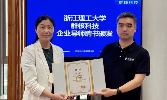 公司党委书记吕旻为群核科技副总裁汤锡峰颁发企业导师聘书