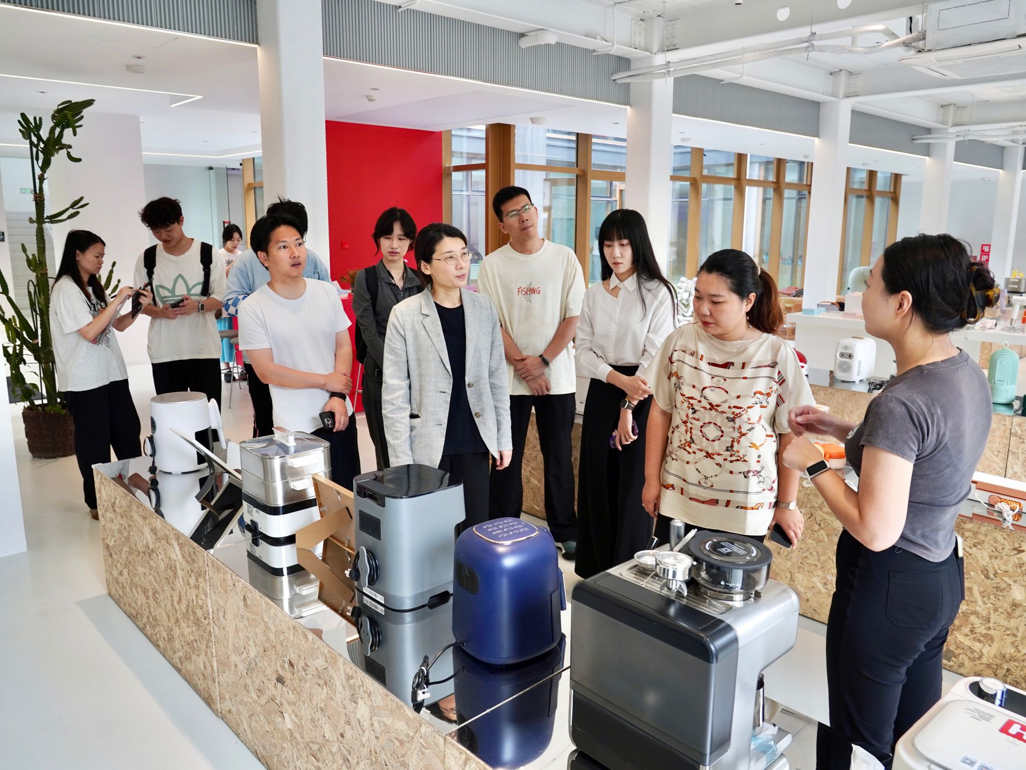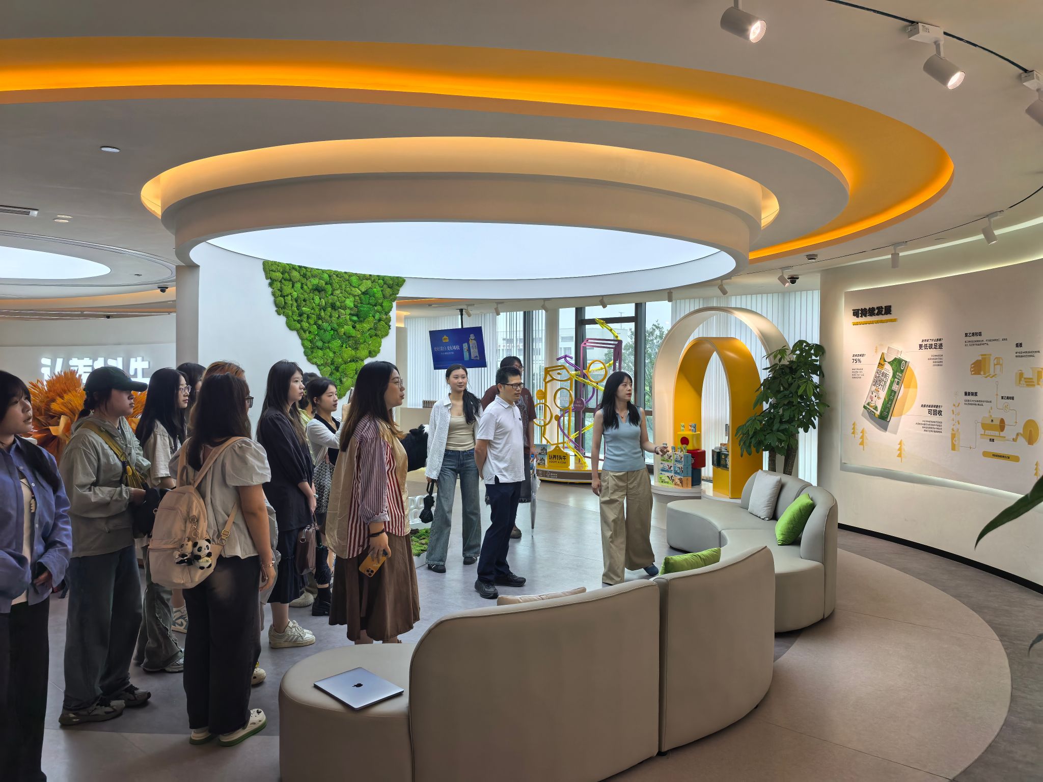 公司副经理李碧,产品设计系主任助理张羞月,教师王蓓蓓、徐乐,辅导员谢泽宇带领员工来到杭州博乐工业设计股份有限公司。在公司董事长周立钢热情接到了公司一行,双方就产学研合作、人才培养、实习实践等工作进行了交流。