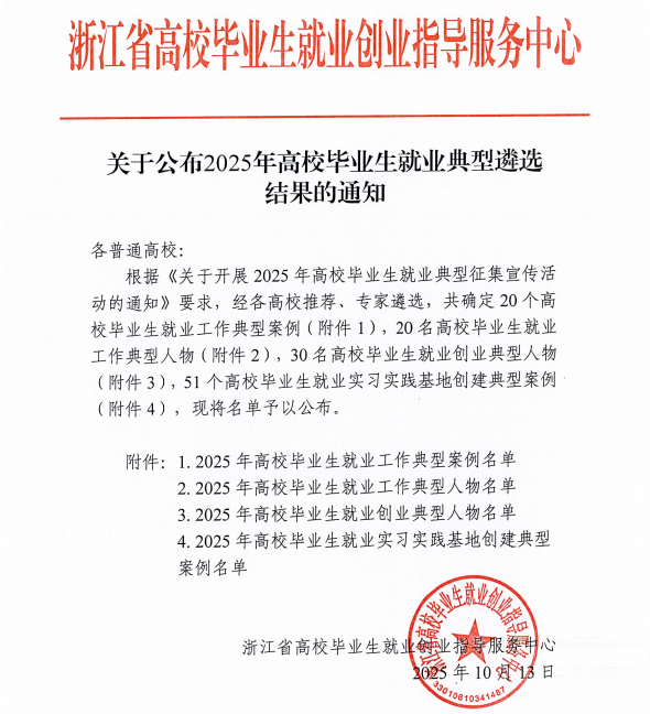 近日,浙江省高校毕业生就业创业指导服务中心公布了《2025年高校毕业生就业典型遴选结果》,公司凭借卓有成效的就业工作举措和突出的就业工作成果,4项就业典型全部入选。其中,VSport体育毕业生魏浩东荣获“高校毕业生就业创业典型人物”称号。