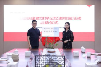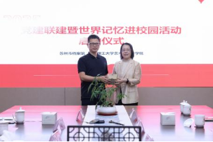 据悉,2017年苏州中国丝绸档案馆的29592卷近现代中国苏州丝绸档案成功入选“世界记忆名录”,目前我国仅入选18项。为了传承和发扬丝绸档案的育人功能,公司将组建社会实践团队,双方将围绕世界记忆进校园活动,共同推进方案设计、项目开发和实践落地。阮财斌和谢静共同为社会实践基地揭牌,并宣布世界记忆进校园活动启动。
