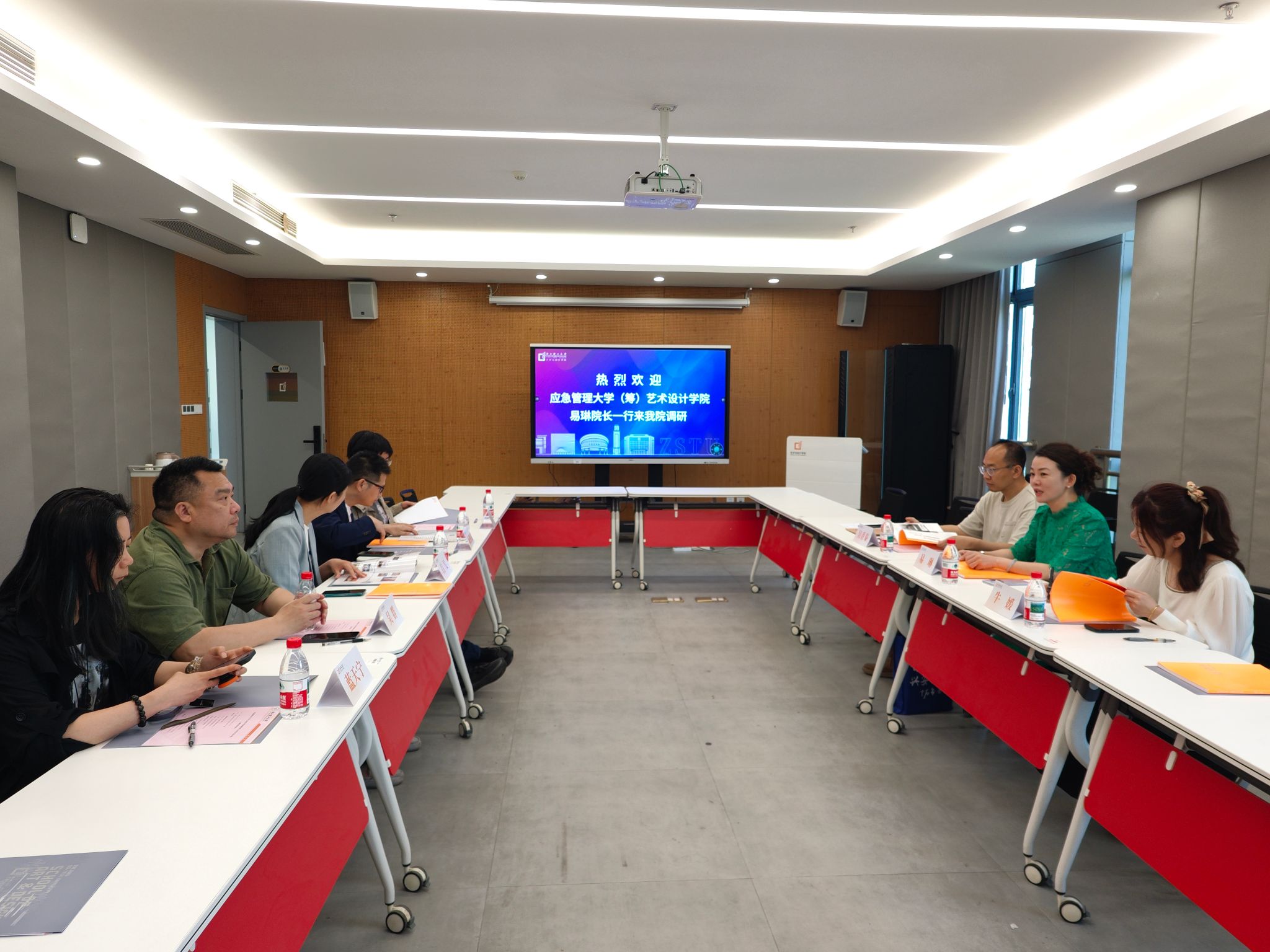 4月18日上午,应急管理大学(筹)艺术设计公司经理兼党委书记易琳一行来公司调研。公司党委书记吕旻、副经理刘杨、党委副书记阮财斌以及公司相关专业负责人等接待调研人员。