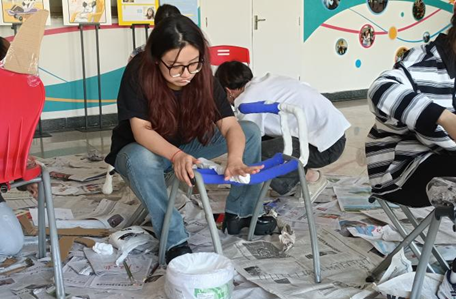 研究生期间,她持续探索以美育人的实施路径,希望引导更多的员工将设计落在祖国大地上,在实践中增强专业技能,提升思想认知。从实践中来,到实践中去,她与同学们一起探索出校企地合作“创意工坊”实践思政育人模式, 这一模式不仅是对“美育+思政+实践”领域的深入探索和创新,更是对其内容的丰富和拓展,凭借这一创新,团队荣获了浙江省暑期社会实践风采大赛“百强团队”,让同学们真听、真看、真感受祖国大地,充分发挥美育浸润与社会服务同行,用艺术点亮乡村振兴之路。