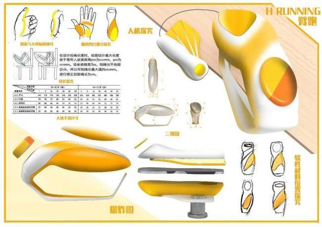 新冠疫情的突然降临让所有人猝不及防,疫情的肆虐令全世界陷入困境。尽管在我们不懈的努力下,疫情已逐渐得到控制,但是疫情下一个个潸然泪下的悲剧依旧警醒我们每一个人。我们以后疫情时代为背景,以免疫力薄弱的老年人为目标用户,为其设计一款居家健身器材——H Running。该产品的设计目的是在居家锻炼逐渐增多的大背景下让老年人可以足不出户地锻炼,以增强自身体质,提高免疫力。为此,我们引入臂跑的概念,在起到有氧运动与上肢锻炼的同时,缓解了对于老年人膝盖和腰部的劳损。该产品主要分为夹持部分和握柄两部分,夹持部分可以固定在大多数型号的座椅上,体积小巧,使用方便,握柄符合人机工程学,舒适性强。产品固定后使用者手握握柄进行臂跑运动,可以为老年人用户提供适宜强度的有氧运动,以达到设计目的。