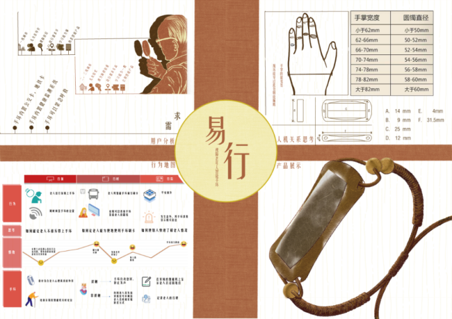 在后疫情期间,人们又可以享受户外散步的乐趣或者出门采购,尤其是视障老人。但是,老人对公交地铁刷卡的困难,家属对老人出门的担忧,还有视障老人的视力问题,都令他们的出行十分困难,为了满足他们出行的社交、生活需要,我们设计了一款视障老人出行用的智能手环,外观遵循传统的手链,内置出行需要的基本功能,能更好地帮助视障老人出行。
