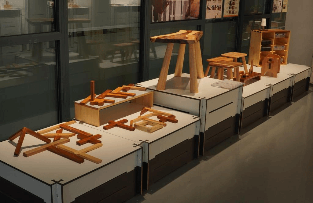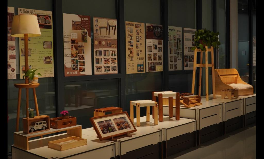 以材料与技术融合为手段,增强员工对材料和工艺的理解,在动手实践的过程中习得技术与材料美学。员工通过实操训练,熟悉和掌握基础木工设备操作、几种榫卯接合的一般制作方法和技能,最终完成设计作品打样。课程强调“做中学(learning by doing)”,采取课堂教学与工坊实践并行的模式,使员工在设计造物的过程中感知材料的特性、加工性能,体验榫卯接合技术的魅力。